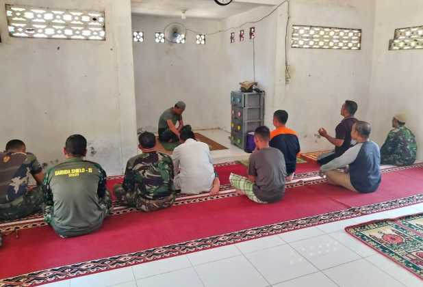 Ruangpubliknews.com | Way Kanan– Satuan Petugas TNI Manunggal Membangun Desa (TMMD) Ke-118 Kodim 0427/Way Kanan melaksanakan Sholat Dzuhur bersama warga Kampung Gunung Katun Kecamatan Baradatu, Sabtu (30/09/2023) di Mushola Nurul Huda.