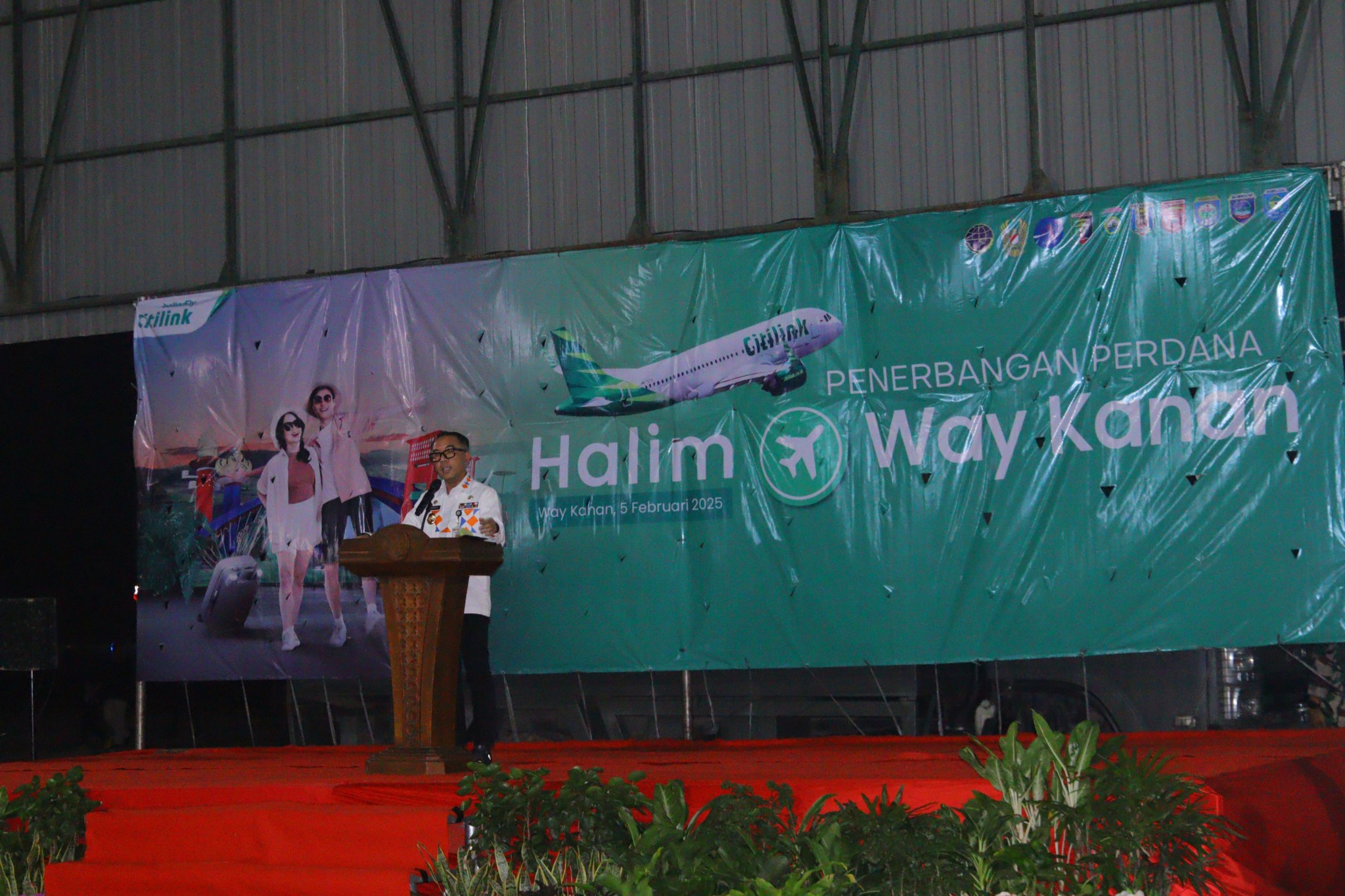 Rungpubliknews.com- Bupati H. Raden Adipati Surya, S.H.,M.M bersama Wakil Bupati Drs. H. Ali Rahman, M.T menghadiri Acara Peresmian Rute Bandara Gatot Soebroto Halim Perdana Kusuma (HLP) – Way Kanan (WTX) di Bandar udara Gatot Soebroto Kecamatan Way Tuba, Rabu (05/02/2025).