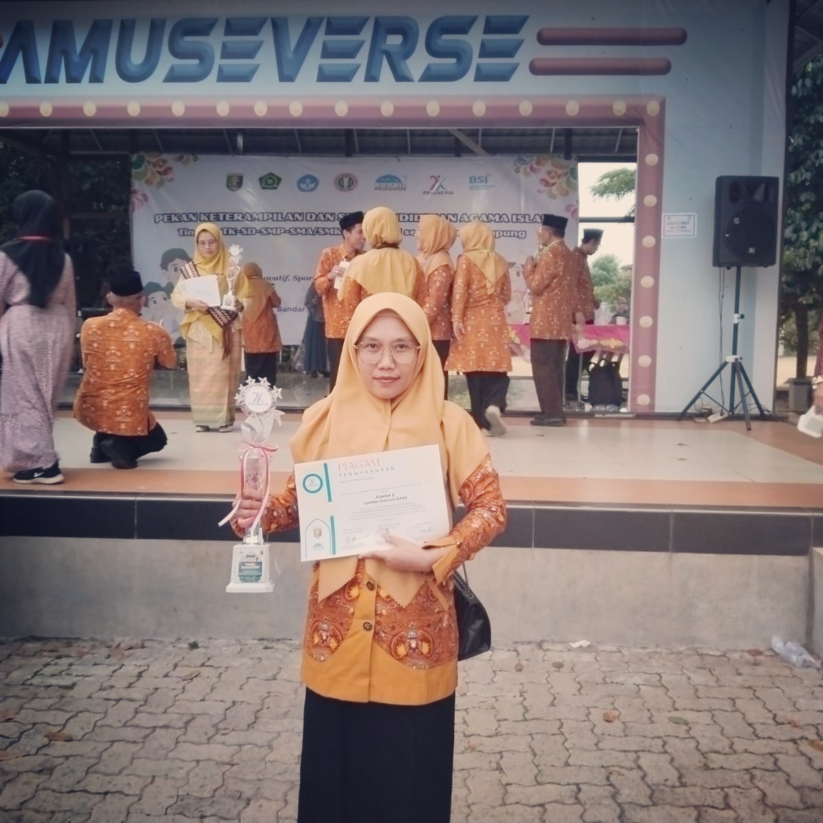 “Penghargaan ini bukan hanya untuk saya pribadi, tetapi untuk seluruh Guru PAI setulang Bawang. Semoga karya ini dapat memberi manfaat dan menginspirasi guru-guru lain untuk terus berinovasi,” ujar Ibu Evi dan Ibu Wahyu usai menerima penghargaan.