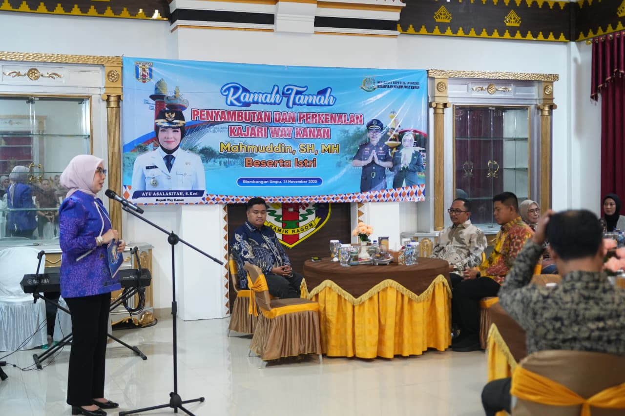 Ruangpubliknews.com.Way Kanan – Bupati Way Kanan, Ayu Asalasiyah, S.Ked., menghadiri Acara Ramah Tamah Penyambutan dan Perkenalan Kepala Kejaksaan Negeri Way Kanan di Nuwa Agung, Rumah Dinas Bupati, Senin (24/11/2025) malam.